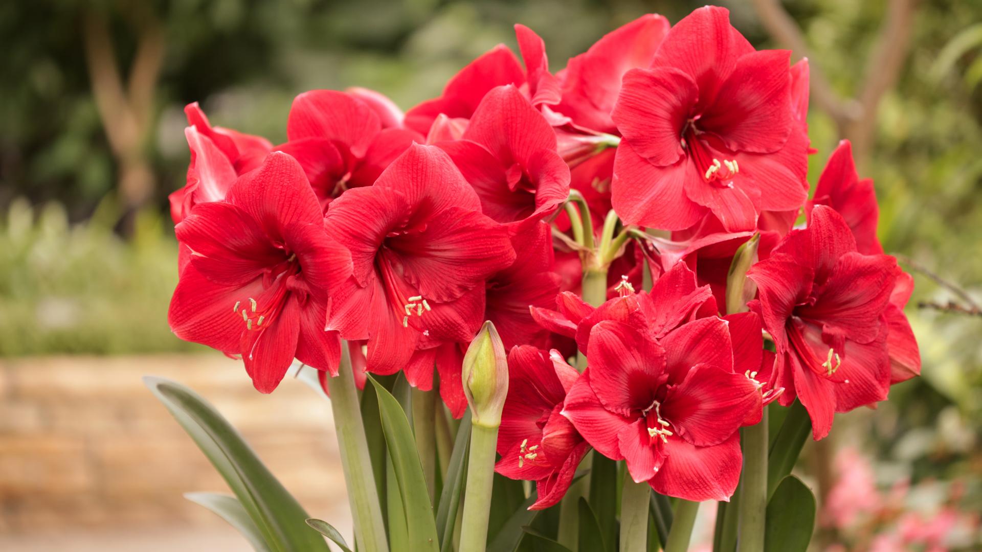 Wallpaper White flowers Amaryllis on a flower bed closeup