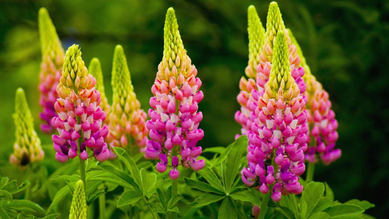 Wallpaper Beautiful pink lupines on a flower bed