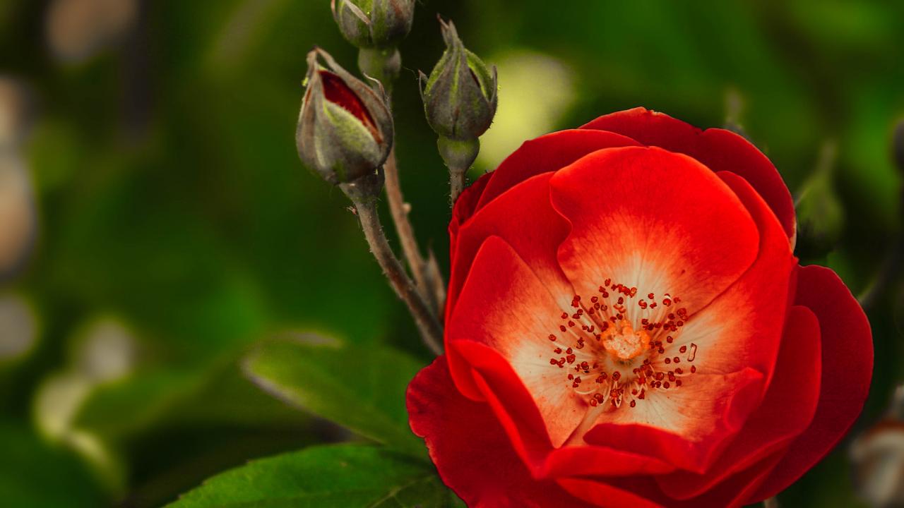 Wallpaper Red delicate rose with buds close-up