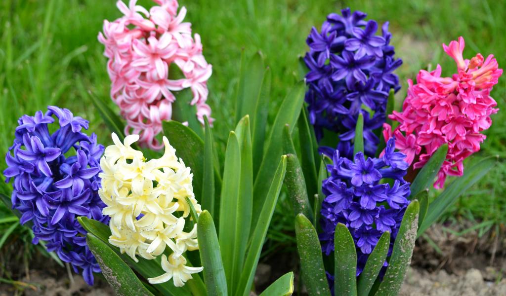 Wallpaper Multi-colored hyacinths on the flowerbed