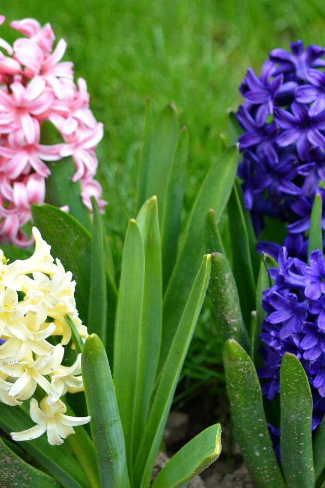 Wallpaper Multi-colored hyacinths on the flowerbed