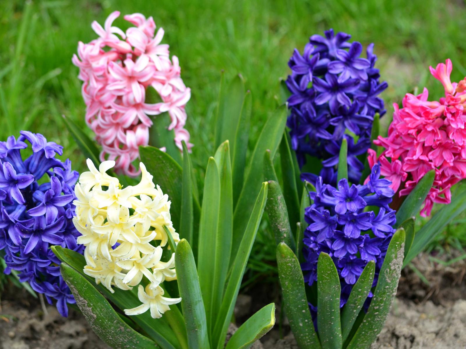 Wallpaper Multi-colored hyacinths on the flowerbed