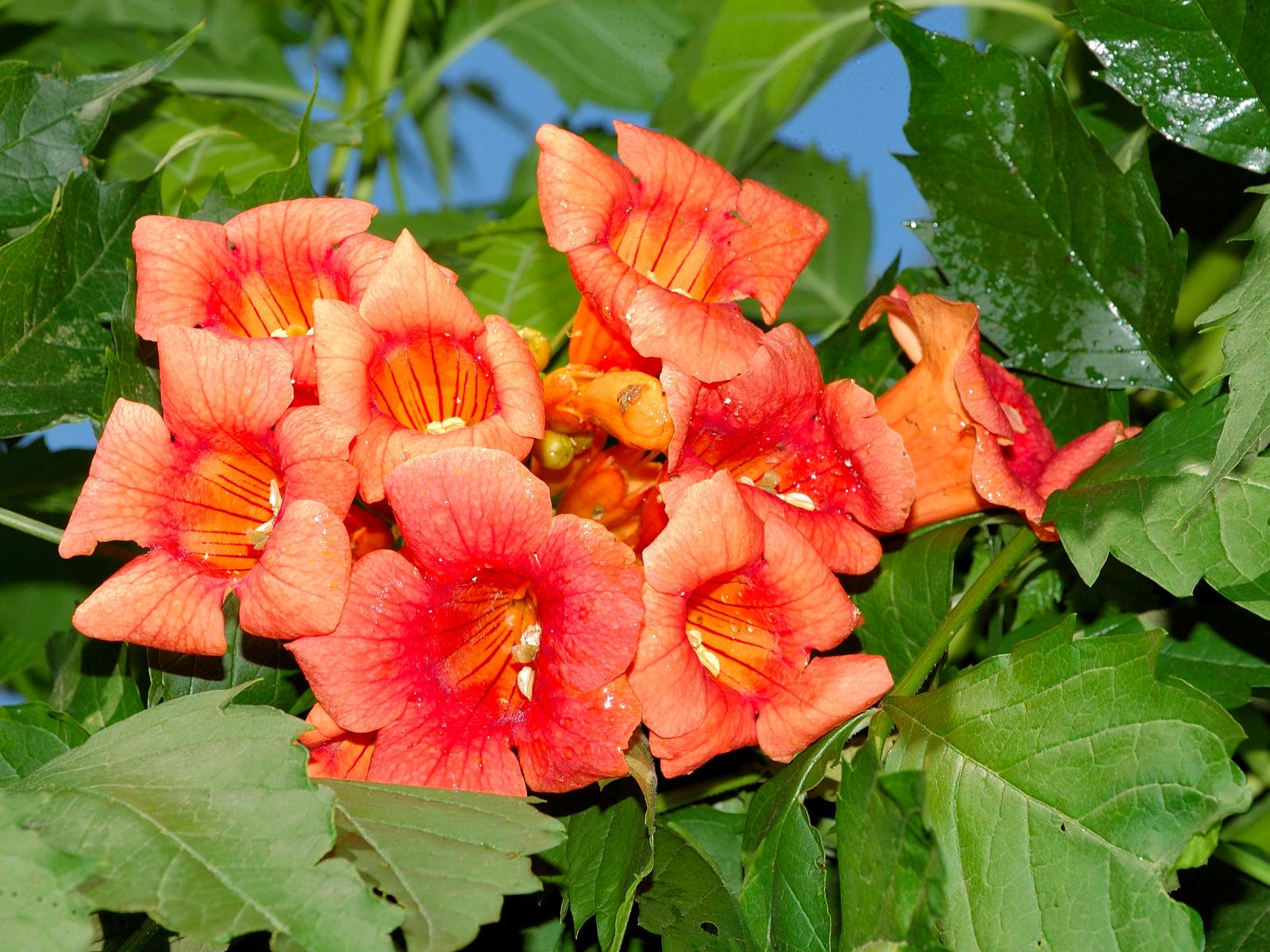 Wallpaper Beautiful garden flowers kampsis orange