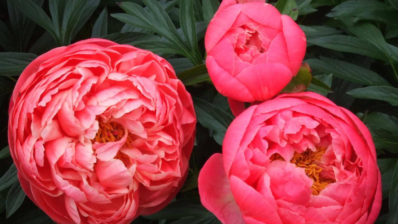 Wallpaper Three pink peonies closeup