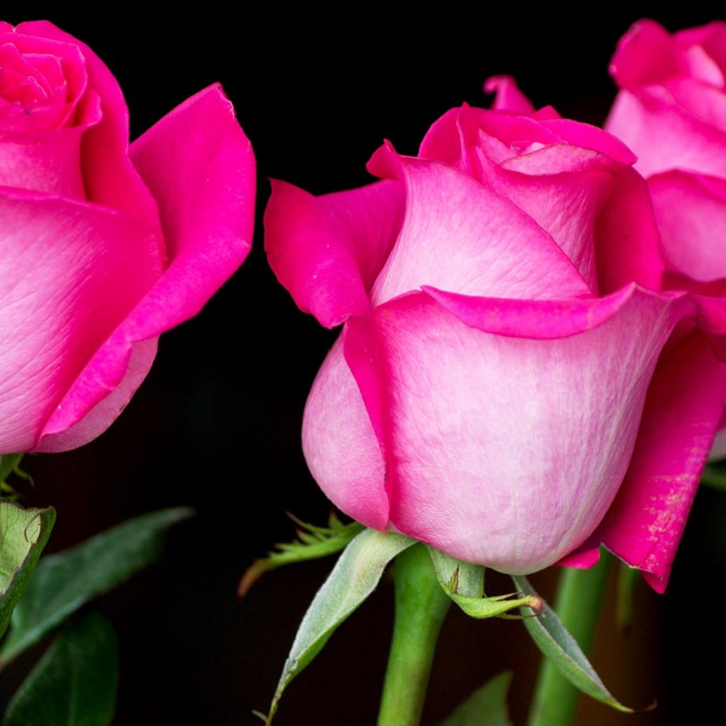 Wallpaper Three beautiful pink roses on a black background
