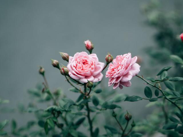 Wallpaper Two pink roses with buds