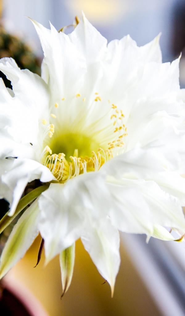 Wallpaper Green prickly cactus with white flower