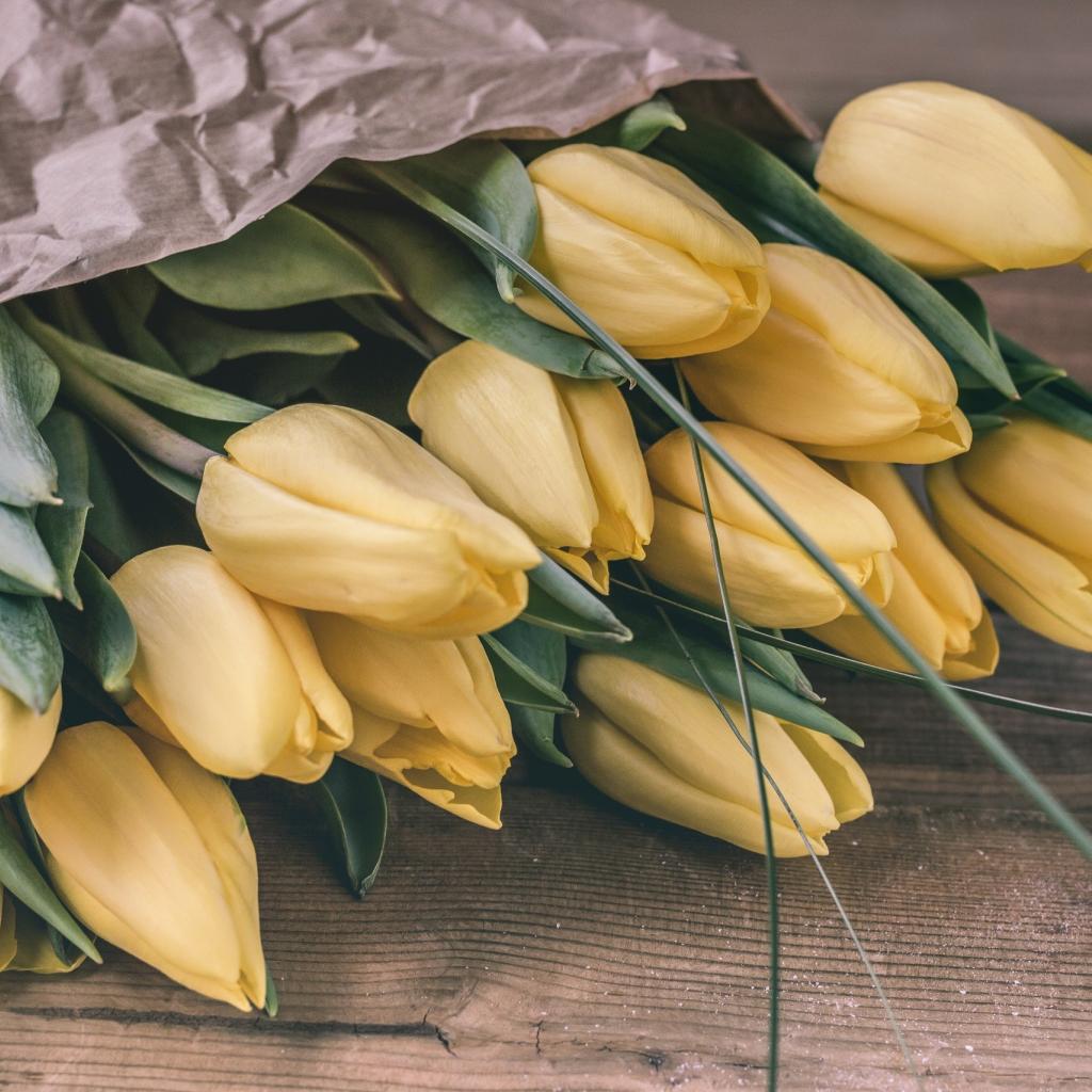 Wallpaper Large bouquet of yellow tulips in paper