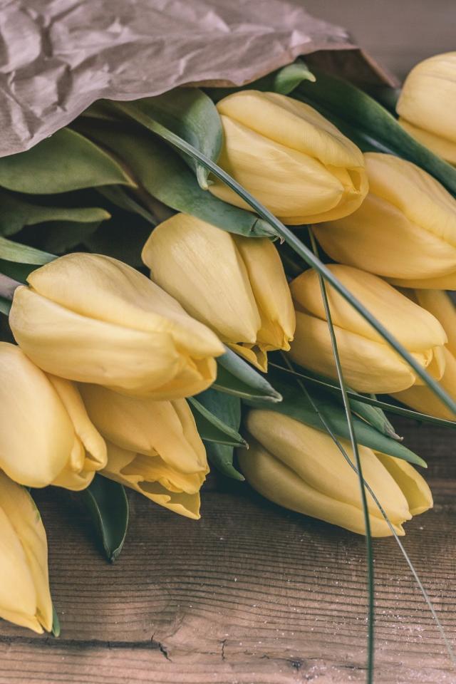 Wallpaper Large bouquet of yellow tulips in paper