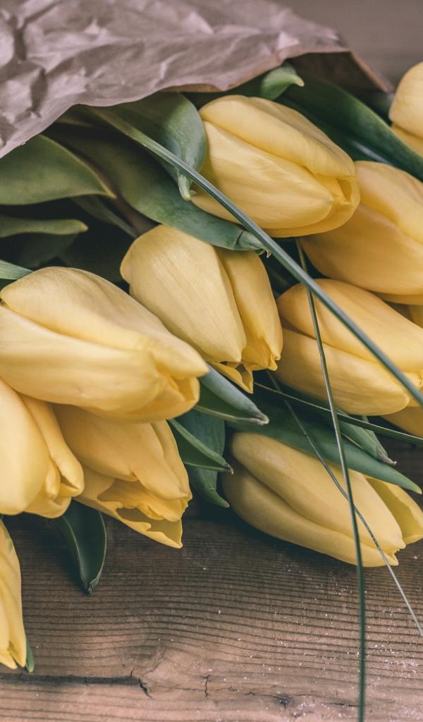 Wallpaper Large bouquet of yellow tulips in paper