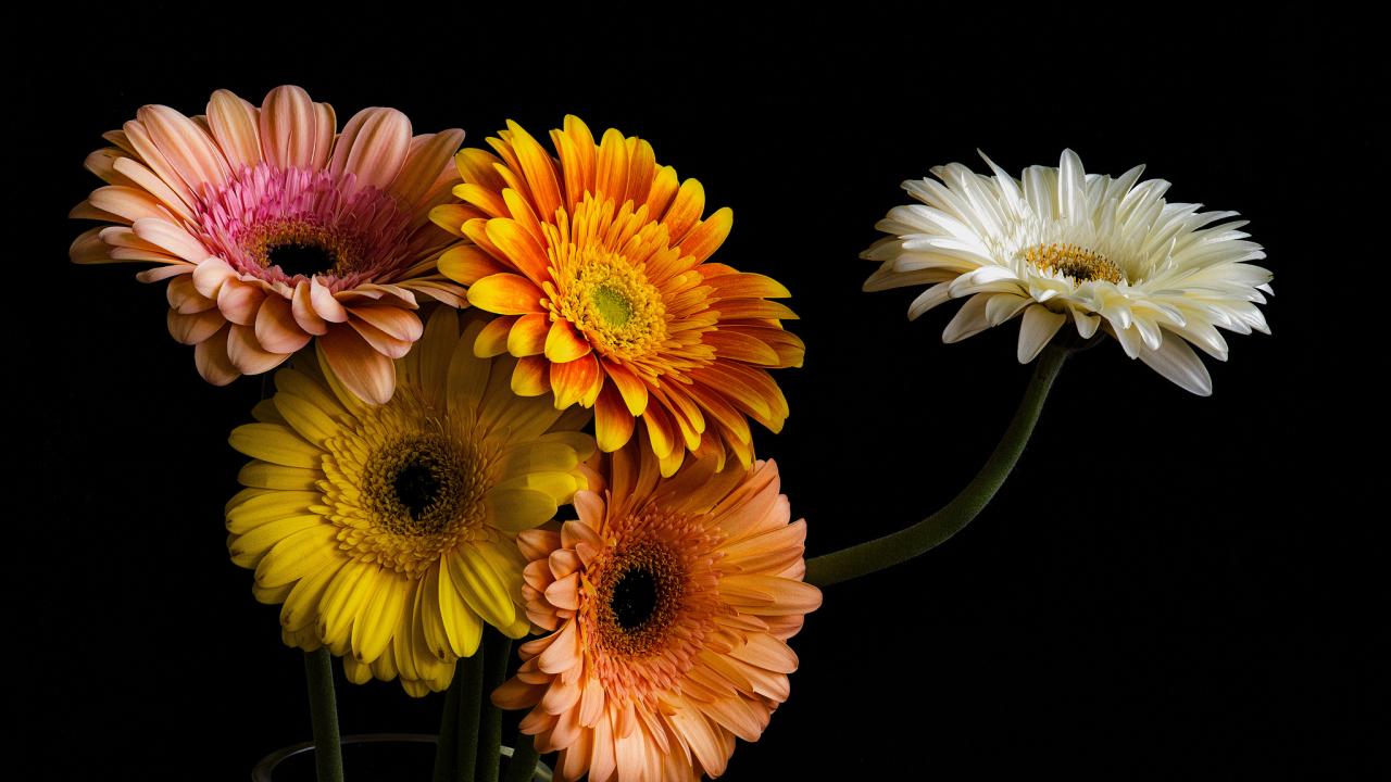 Wallpaper Bouquet of colorful gerberas in a glass vase