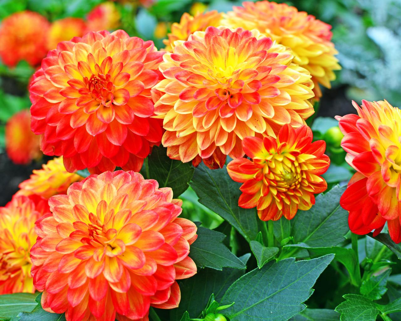 » Wallpaper Beautiful orange flowers of dahlias