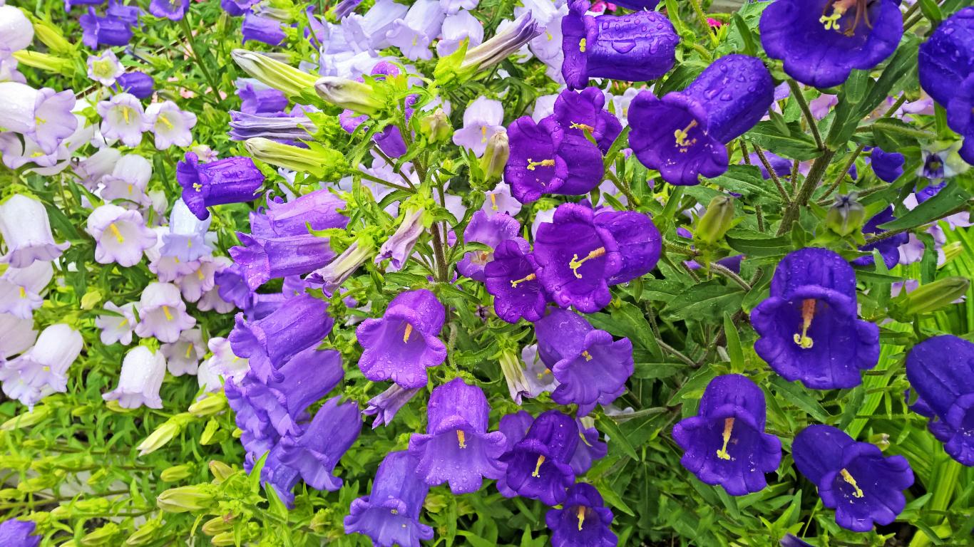 Wallpaper Beautiful violet flowers bells in dew drops