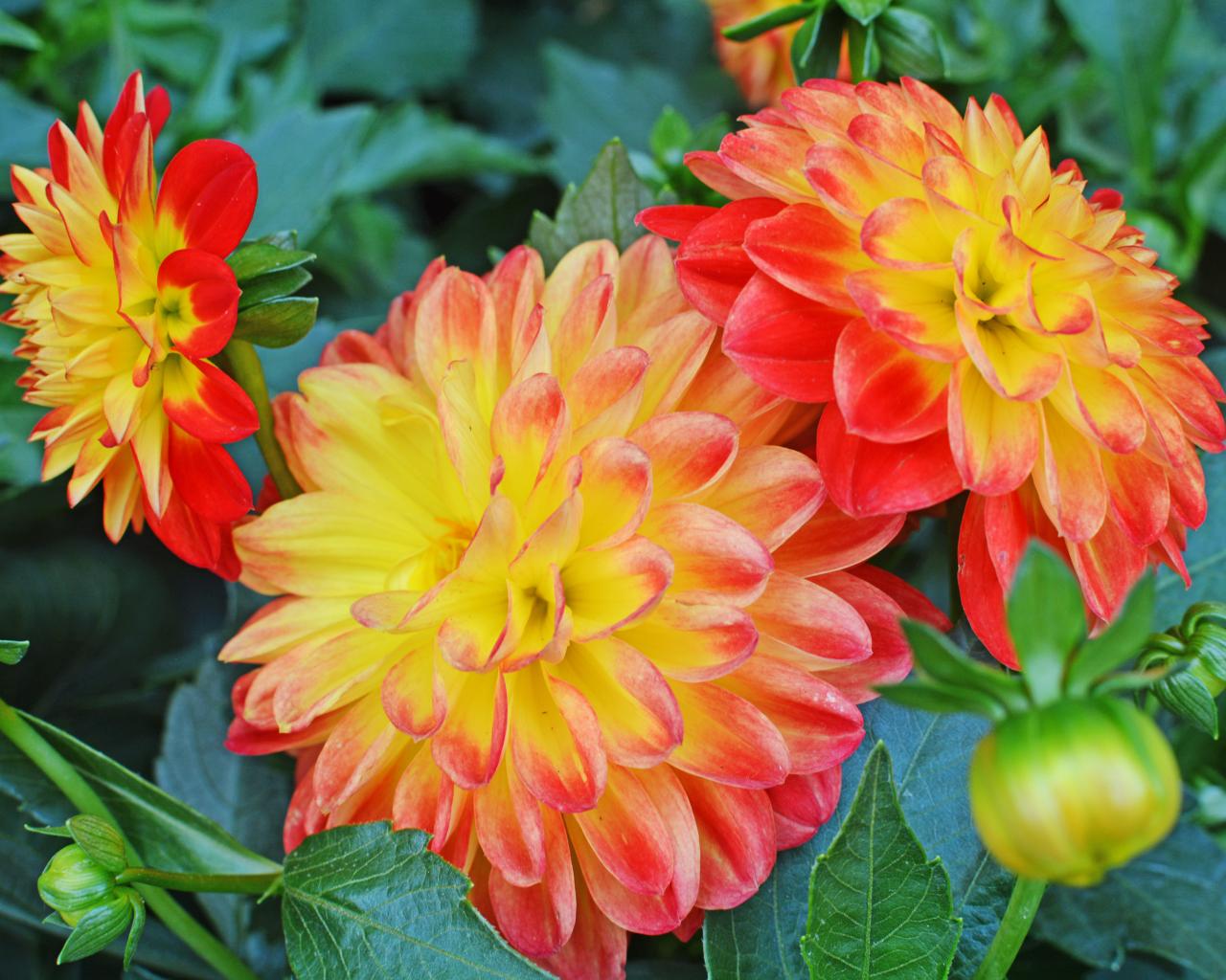 » Wallpaper Three beautiful orange dahlias