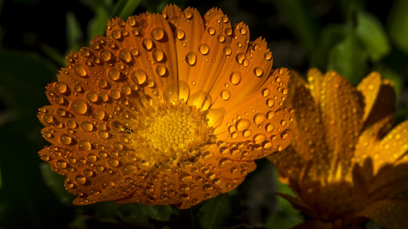 Wallpaper Yellow summer flowers Rudbeckia in drops of water