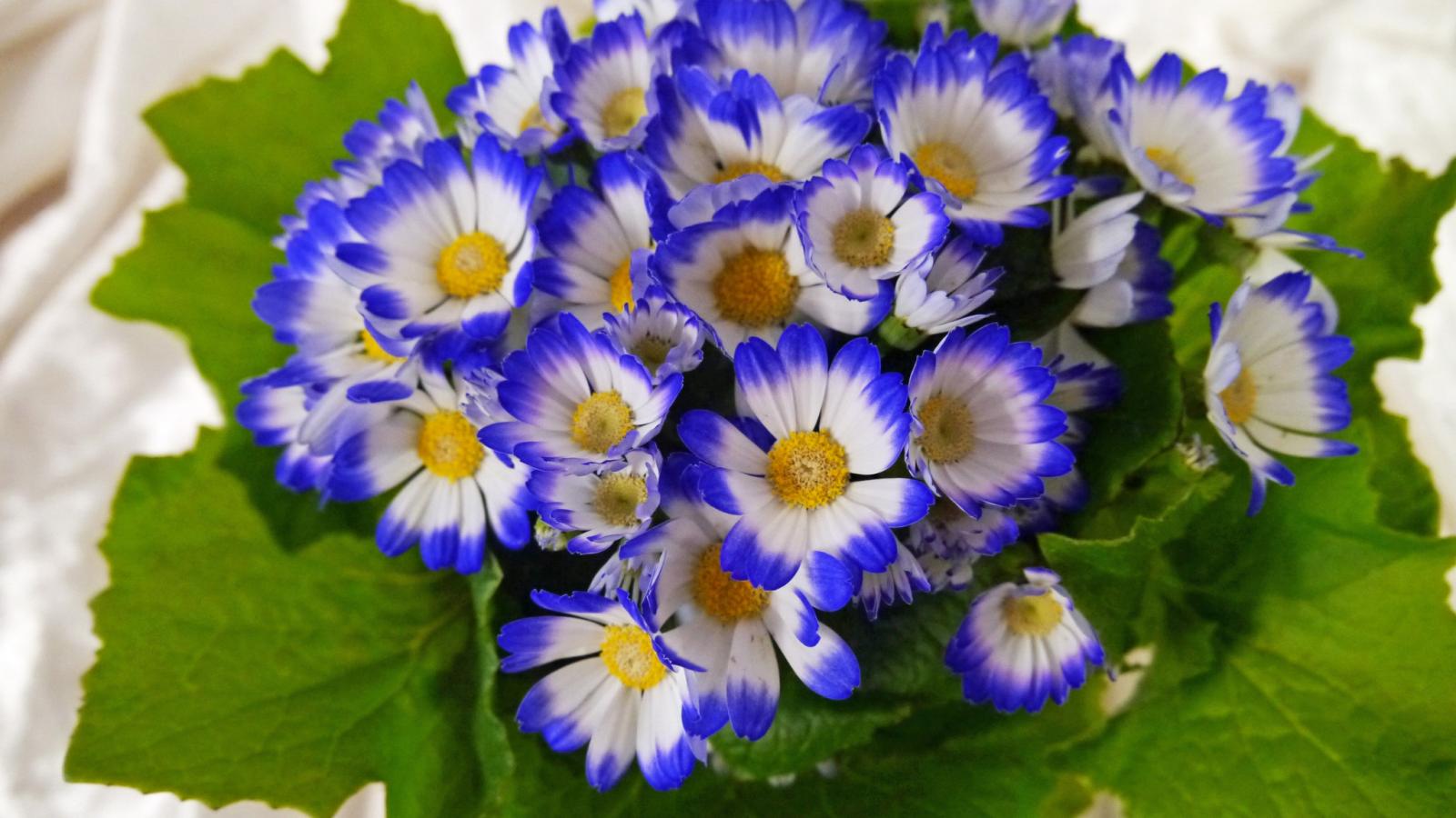 Wallpaper Beautiful blue and white cineraria flowers