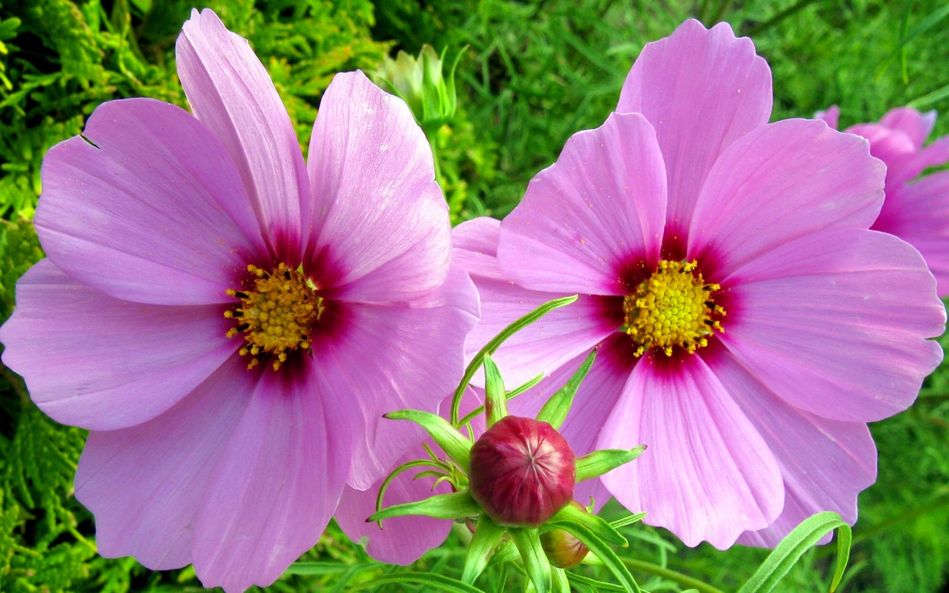 Wallpaper Two pink flowers with a bud