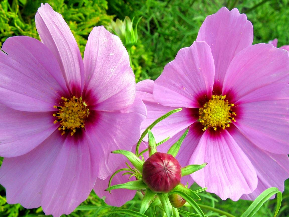 Wallpaper Two pink flowers with a bud