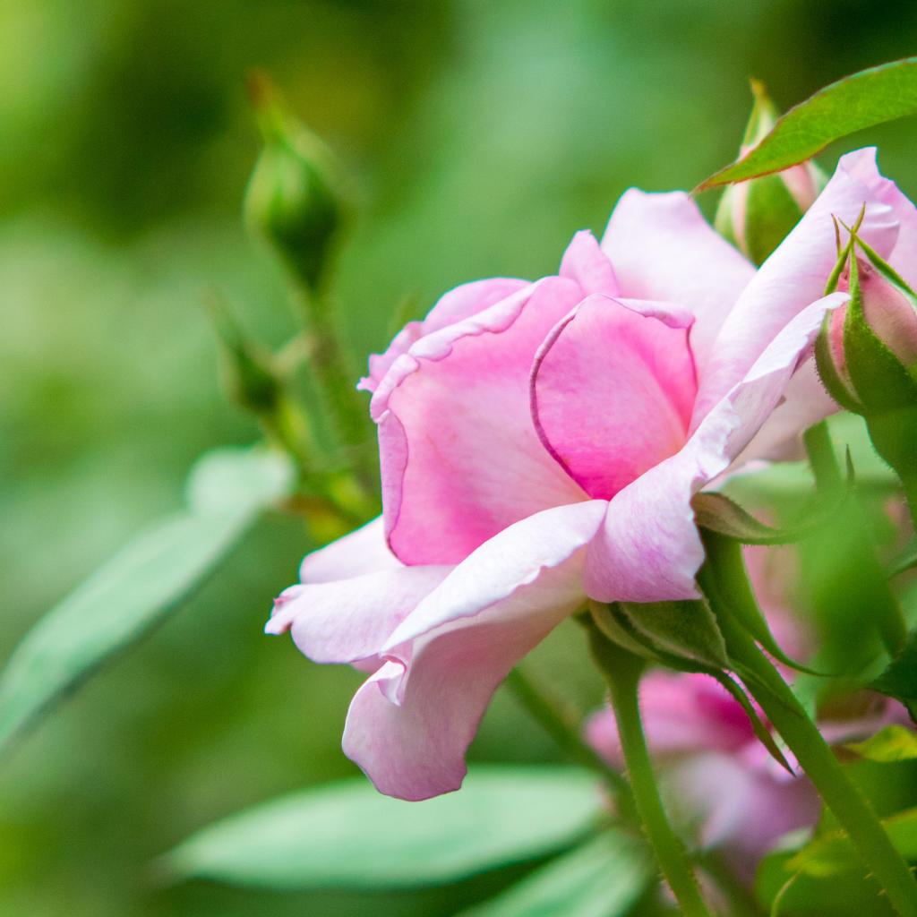 Wallpaper Pink flower of a rose with buds in drops of dew