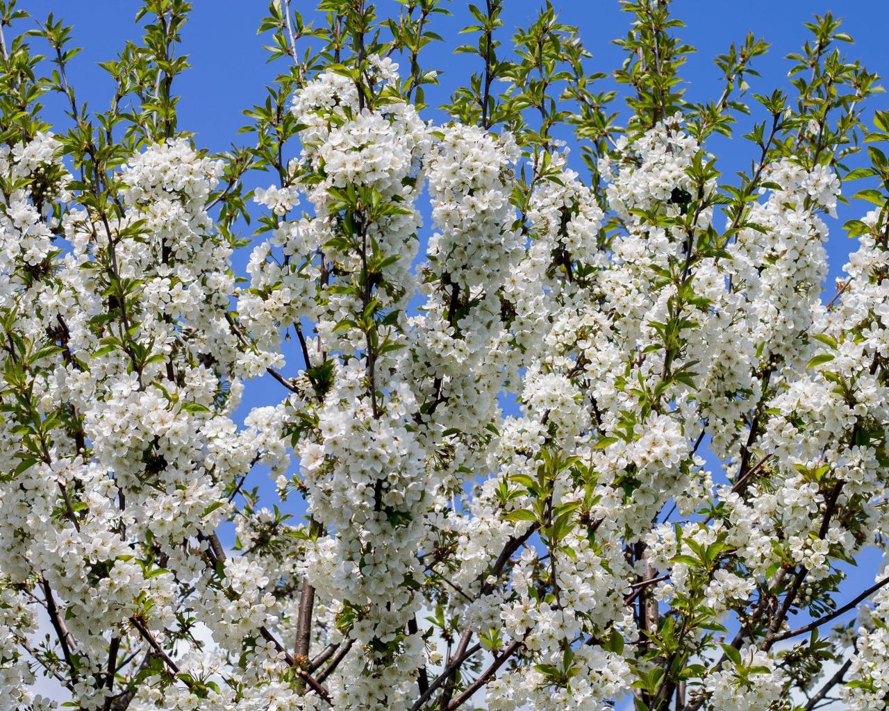 Wallpaper Flowering with white flowers spring tree