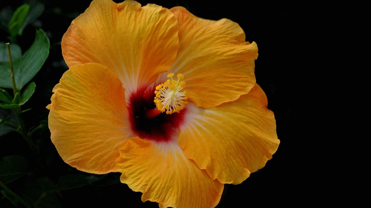Wallpaper Yellow hibiscus flower on a black background