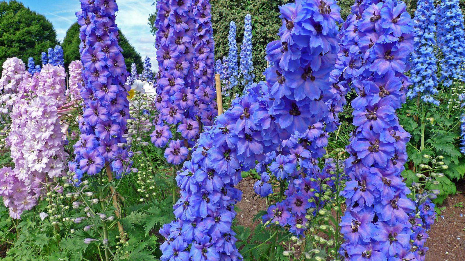 Wallpaper Colorful Delphinium Flowers in a Greenhouse