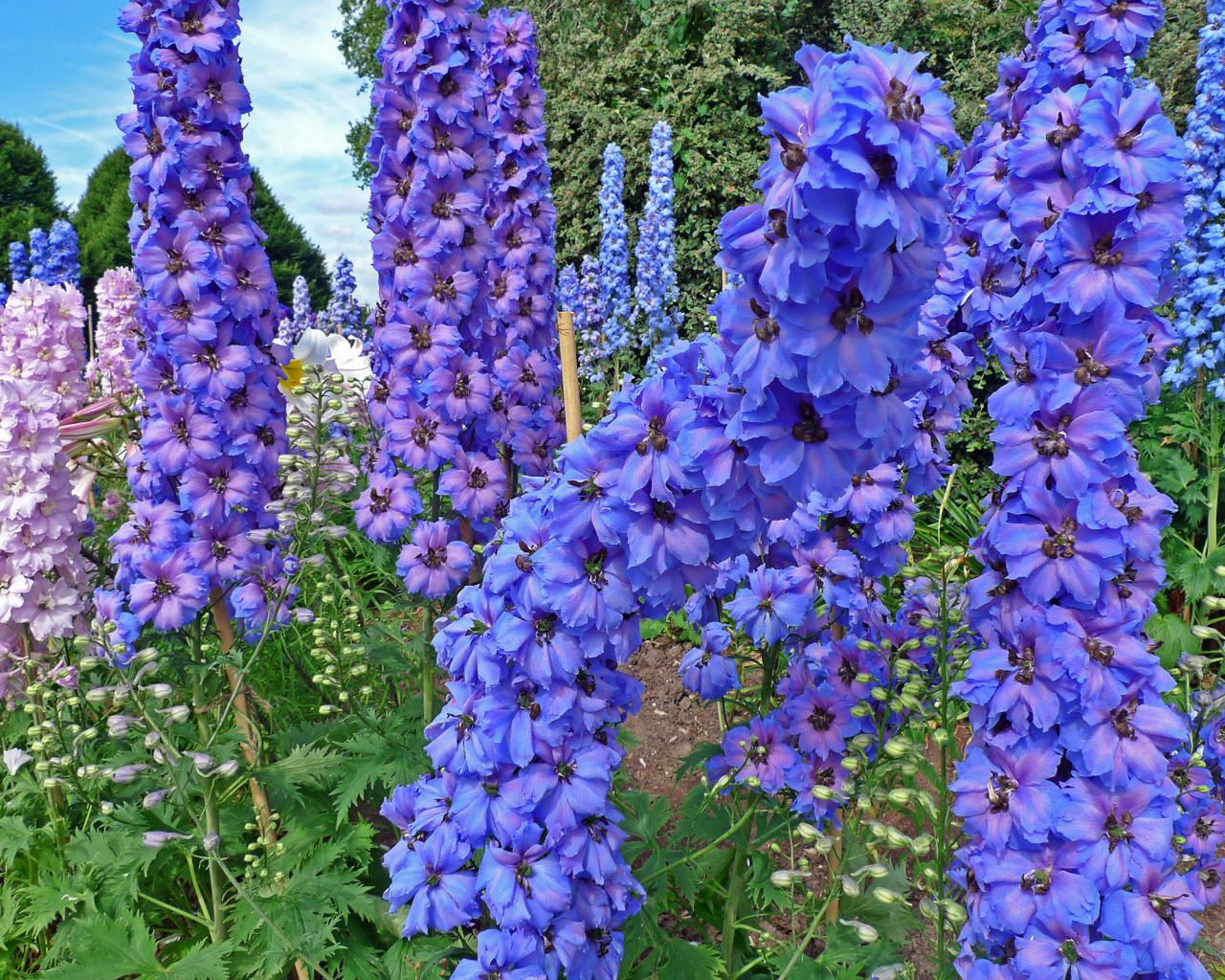 Wallpaper Colorful Delphinium Flowers in a Greenhouse
