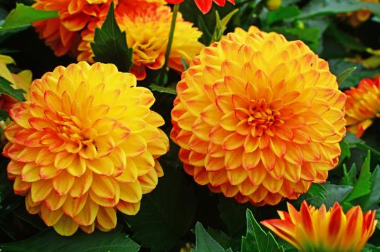 Wallpaper Many large orange chrysanthemums in the flowerbed