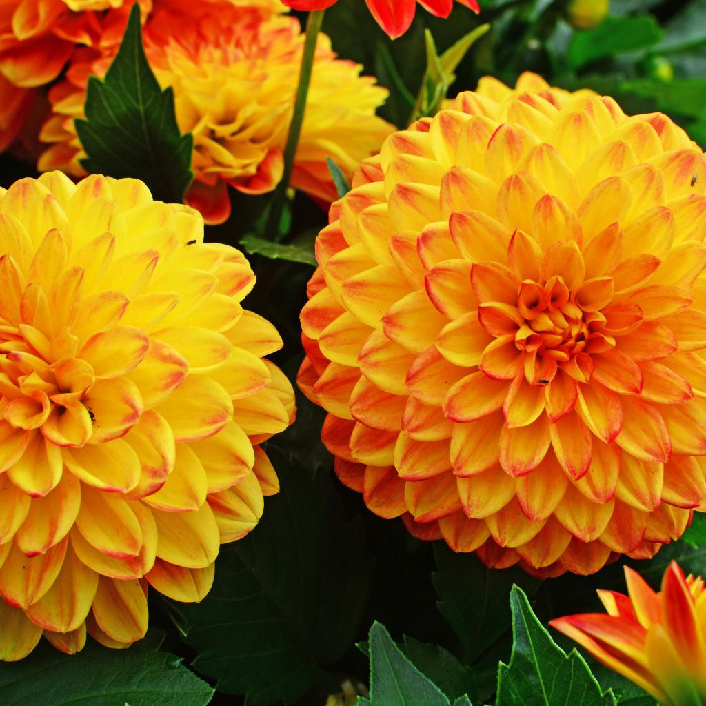 Wallpaper Many large orange chrysanthemums in the flowerbed