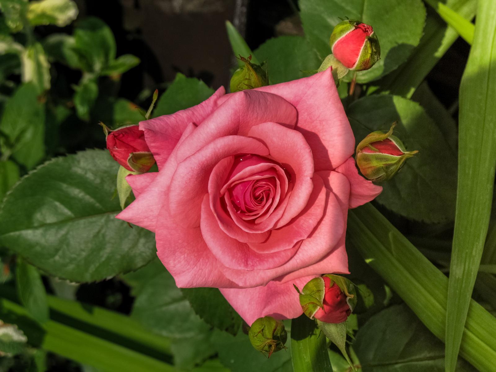 Wallpaper Pink rose with buds on the flower bed