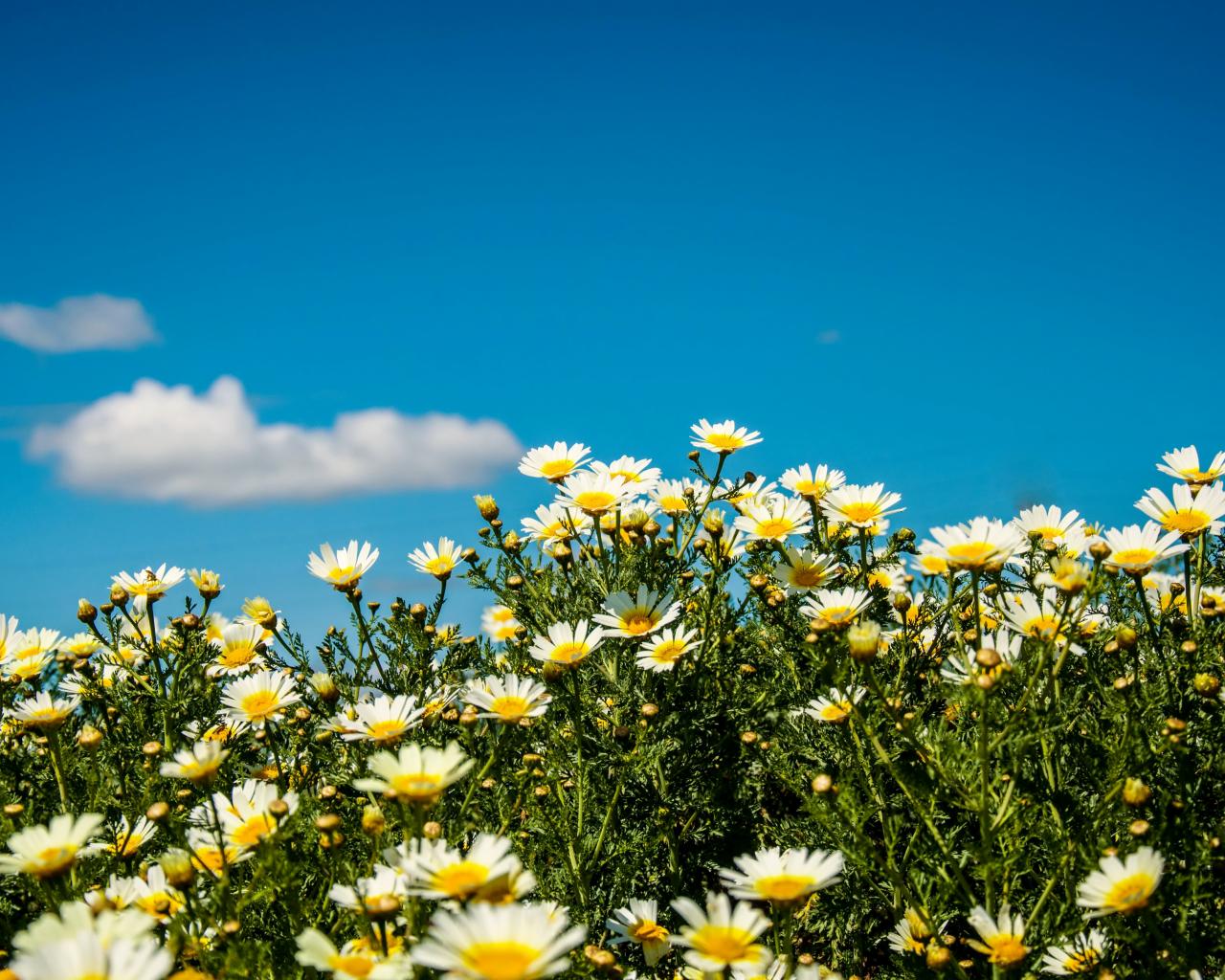 Wallpaper White field daisies under the summer blue sky