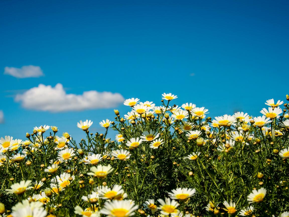 Wallpaper White field daisies under the summer blue sky