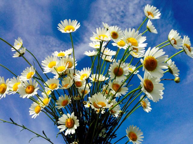 Wallpaper Beautiful white field chamomiles on blue sky background