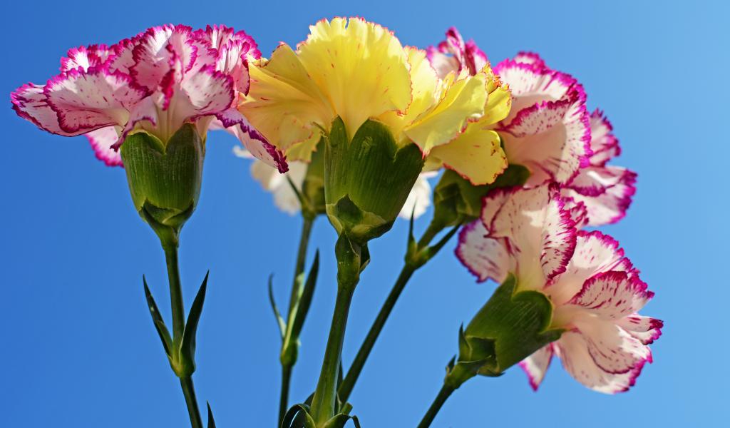 Wallpaper Bouquet of carnations on a blue background close-up