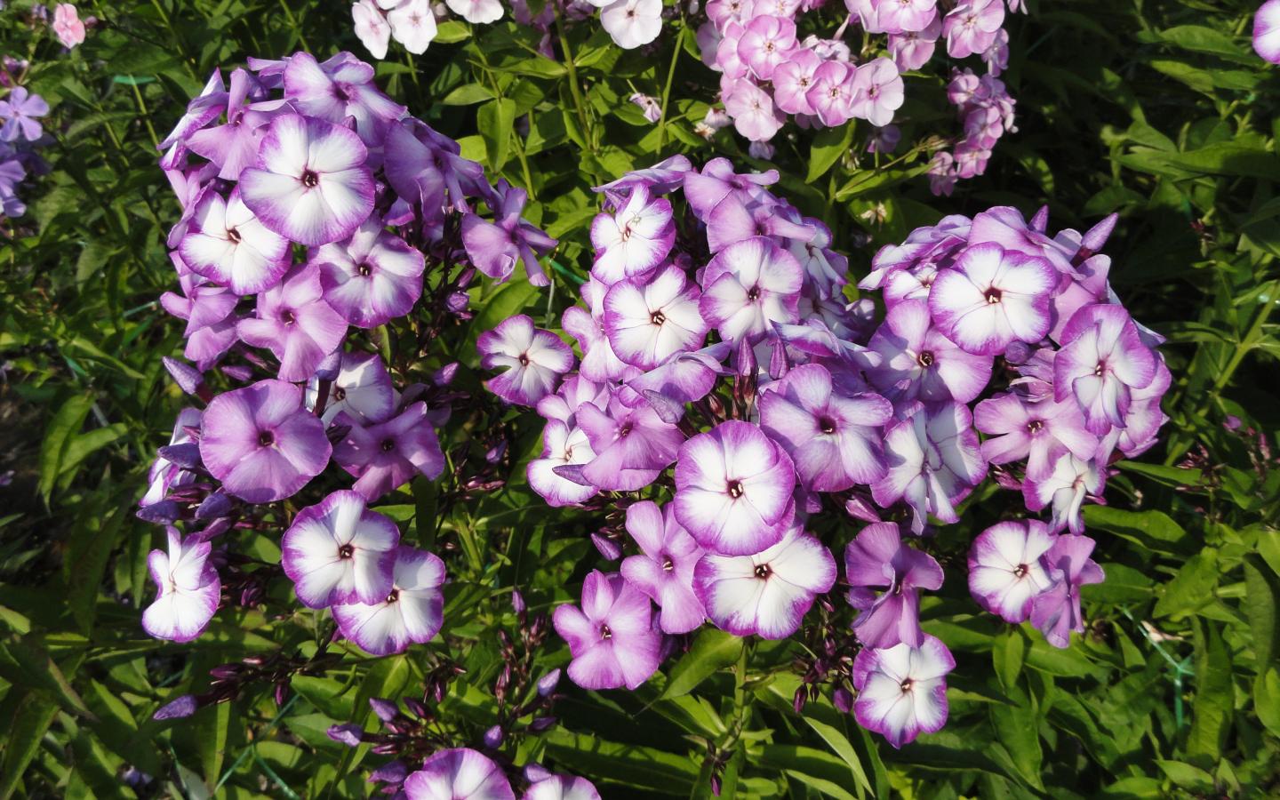 Wallpaper Bright violet-white flowers of garden phlox