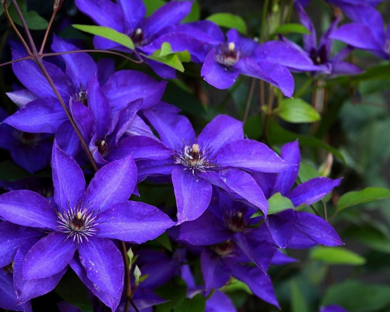 Wallpaper Lilac blooming clematis close-up