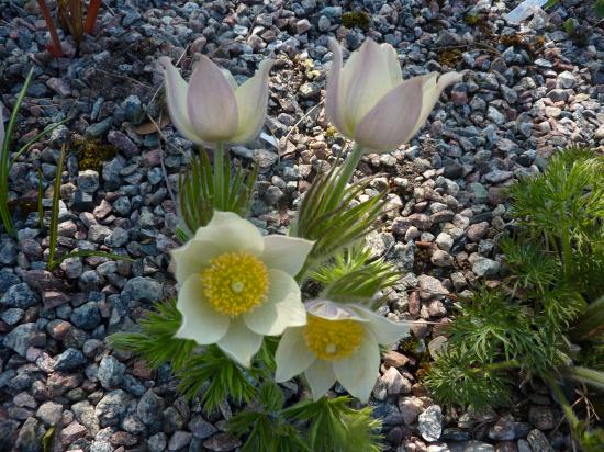 Wallpaper White flowers lumbago grow on stones