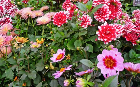 Wallpaper Beautiful multicolored dahlias on a flower bed