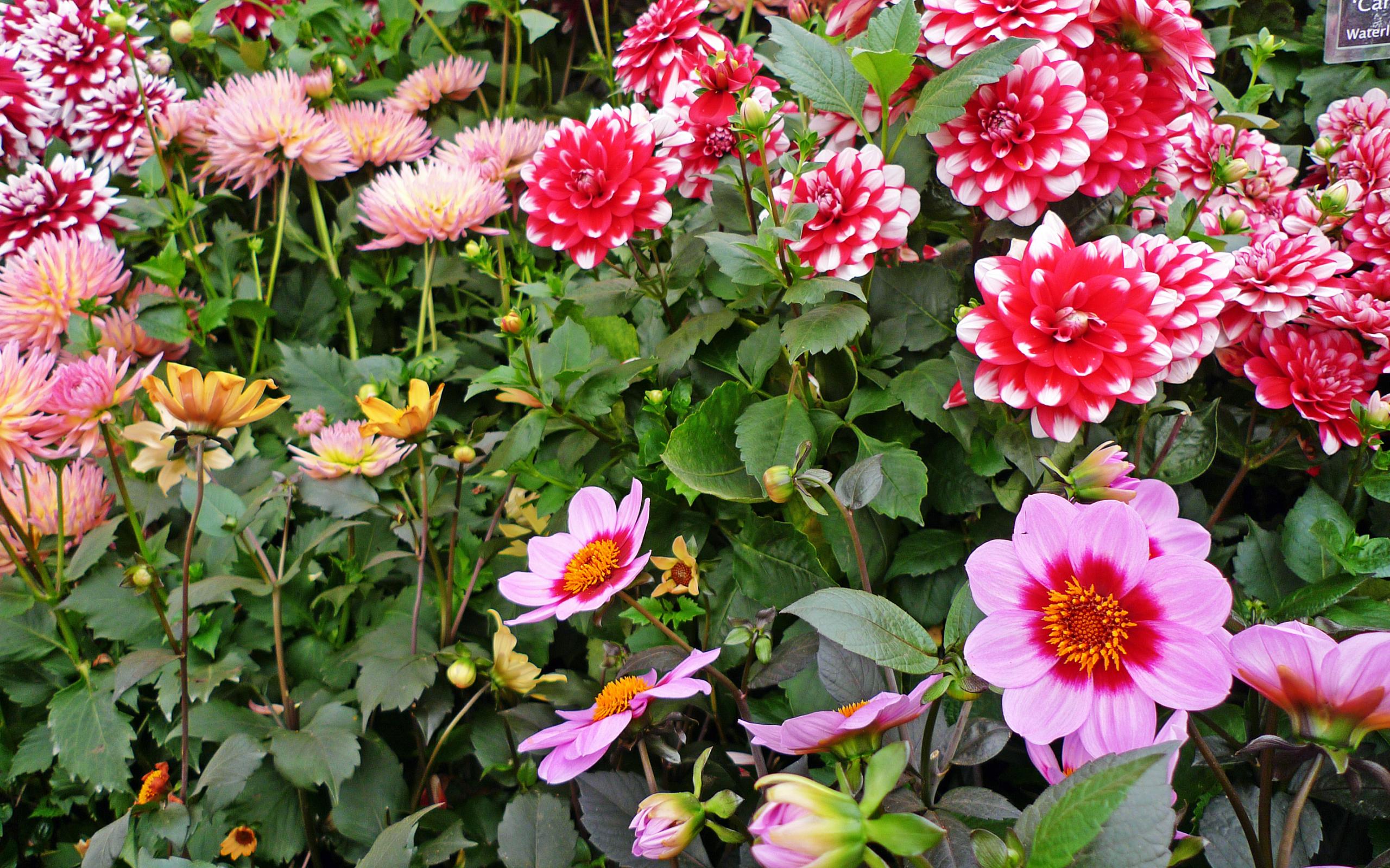 Wallpaper Beautiful multicolored dahlias on a flower bed