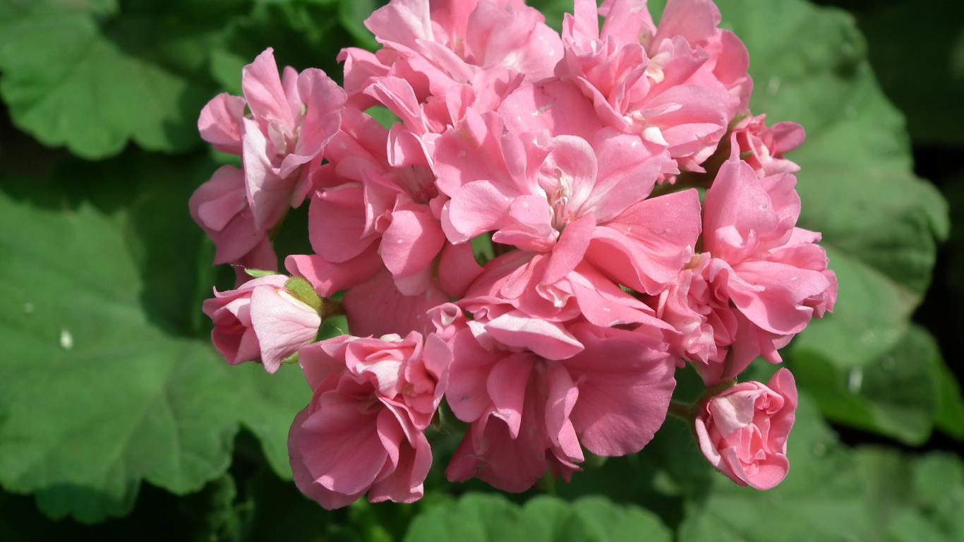 Wallpaper Pink blooming geranium flower close-up