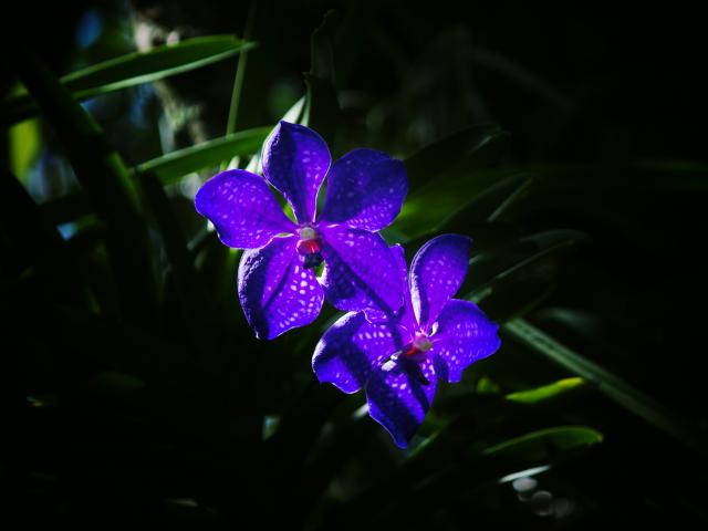 Wallpaper Purple flowers pansies with orange chrysanthemum flowers