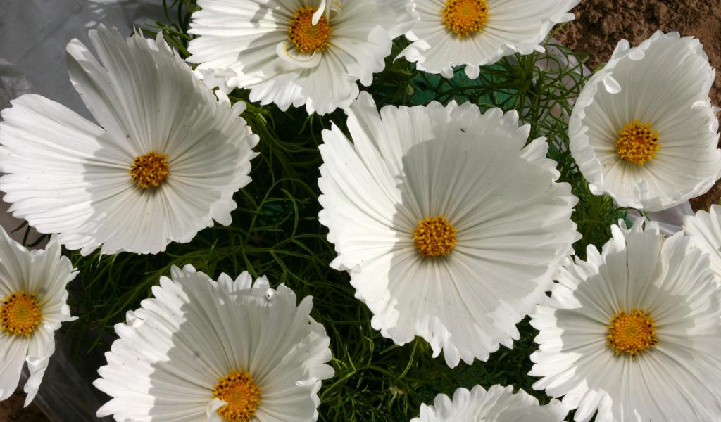 Wallpaper White delicate flowers kosmeya closeup