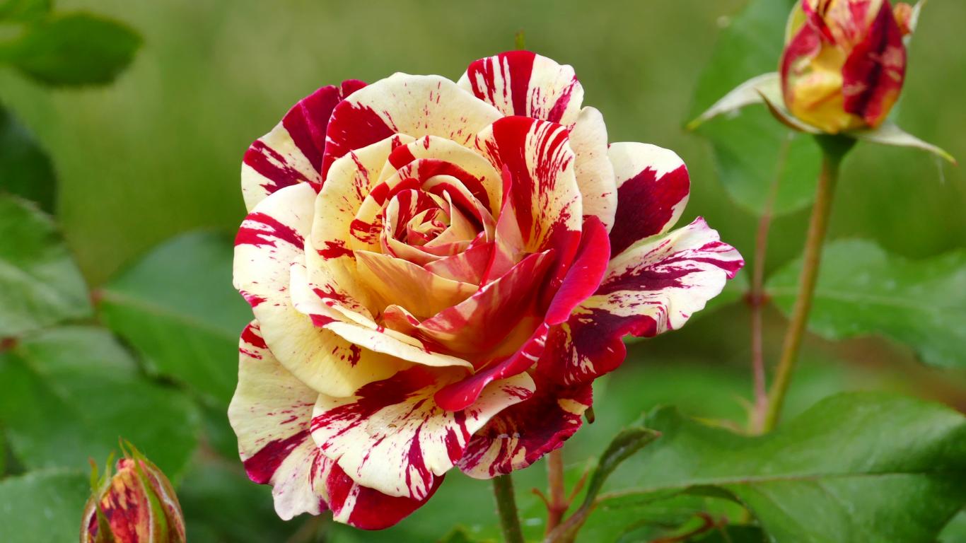 Wallpaper Beautiful multi-colored rose with buds close-up