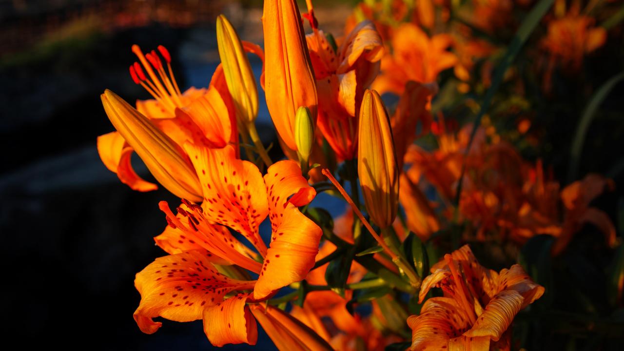 Wallpaper Yellow beautiful tiger lilies on a flower bed closeup