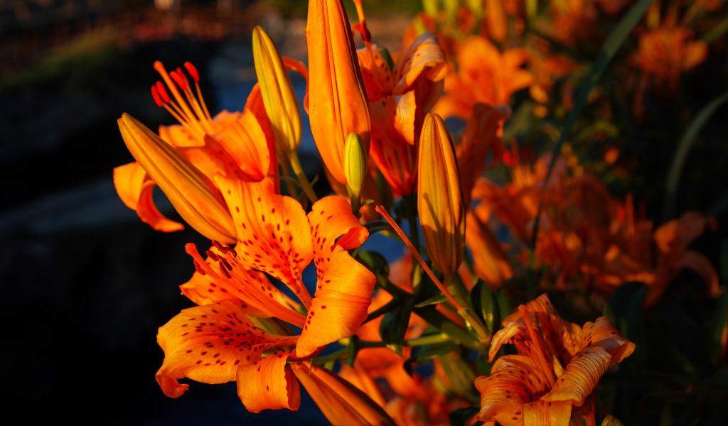 Wallpaper Yellow beautiful tiger lilies on a flower bed closeup