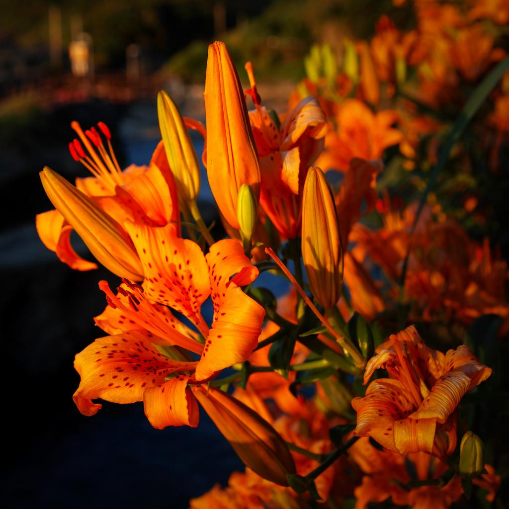 Wallpaper Yellow beautiful tiger lilies on a flower bed closeup