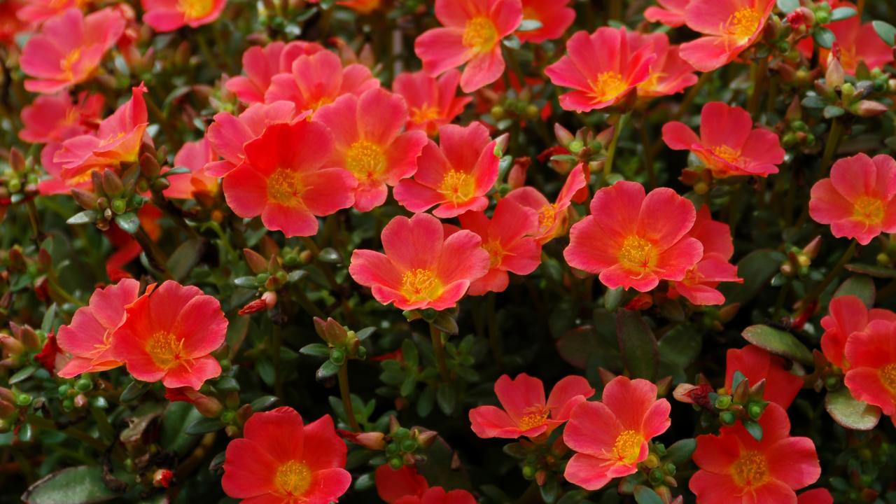 Wallpaper Red Portolac on a flower bed closeup