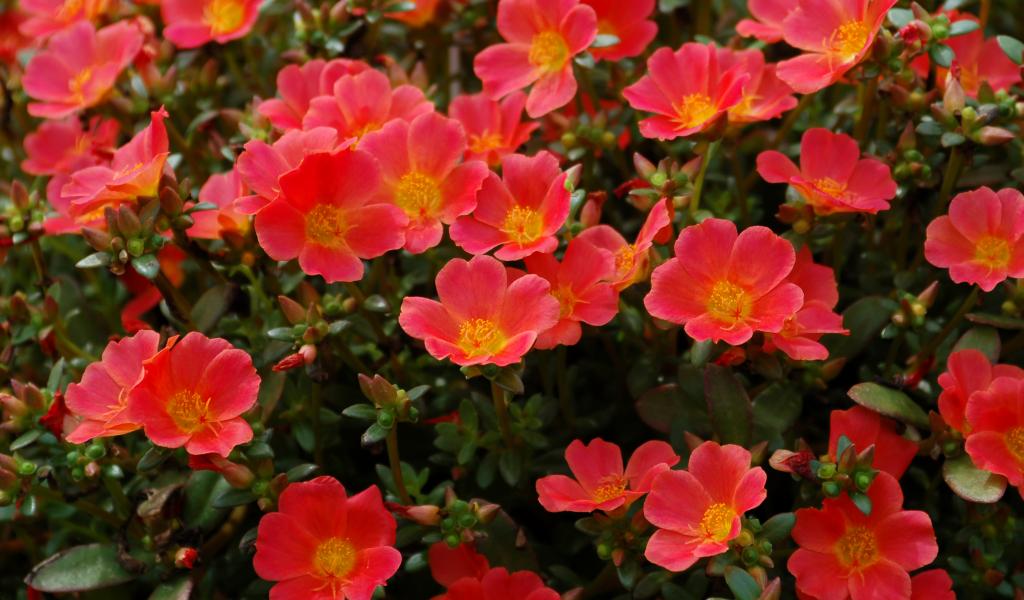 Wallpaper Red Portolac on a flower bed closeup