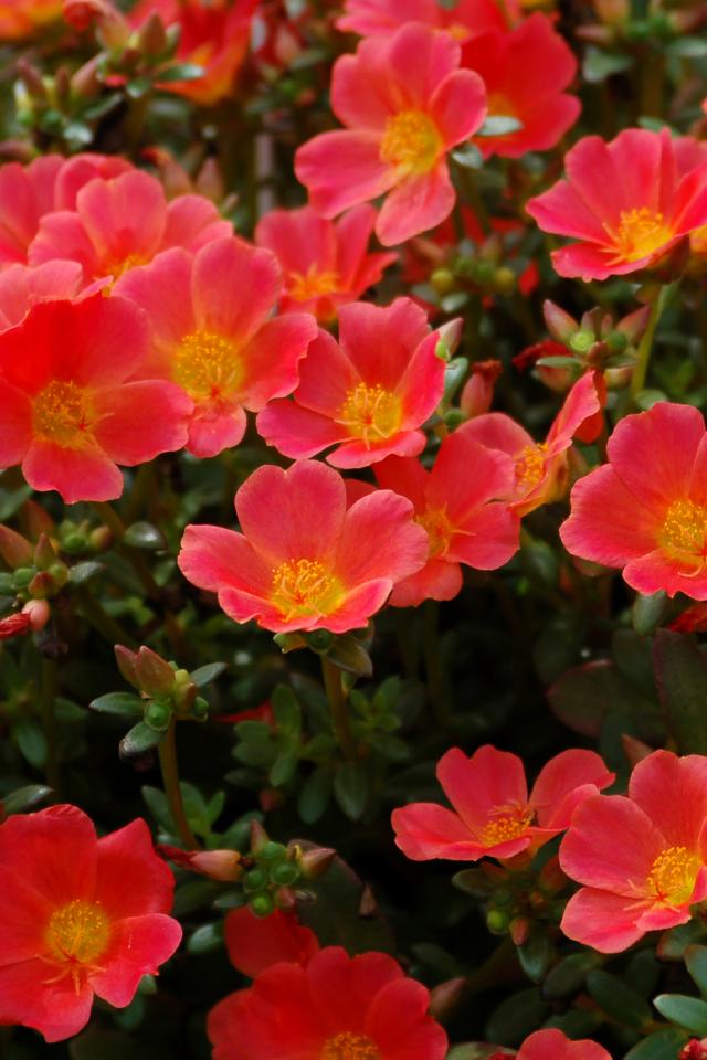 Wallpaper Red Portolac on a flower bed closeup