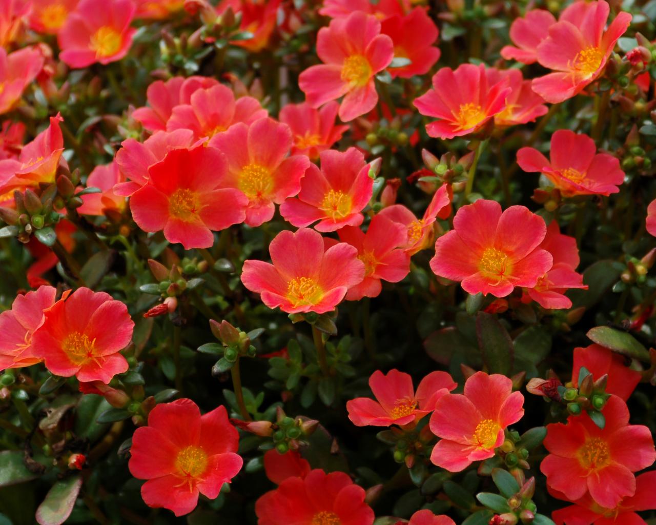 Wallpaper Red Portolac on a flower bed closeup